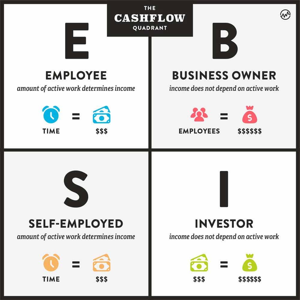 My poor and rich dads’ opposing views of the world are best explained by the CASHFLOW Quadrant, or ESBI.